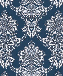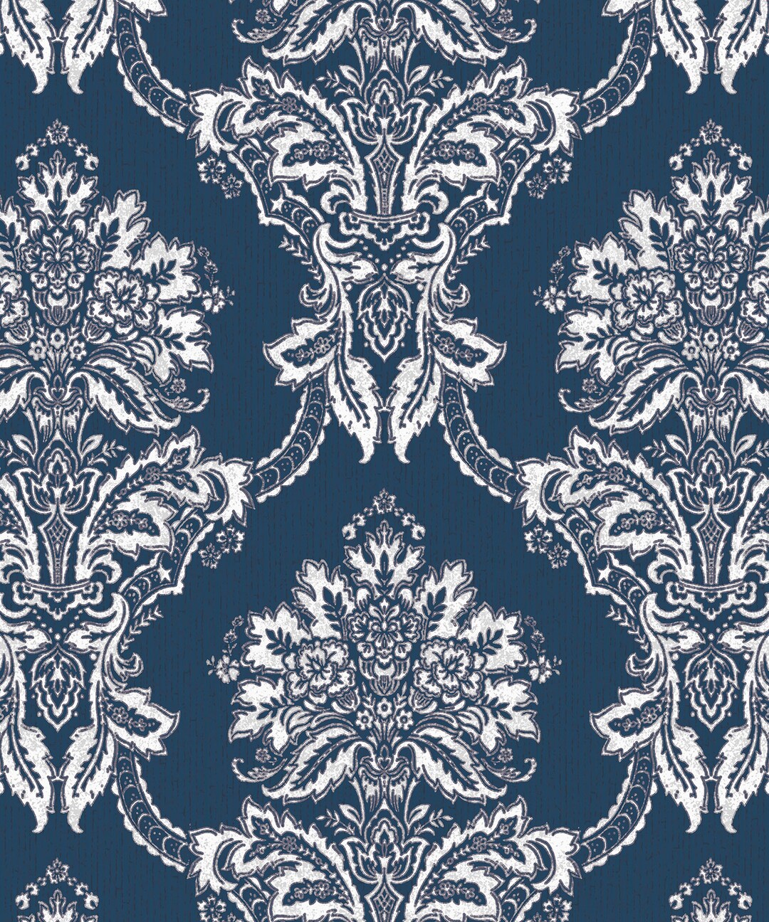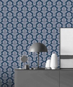 - Excel 4005-4 Vinyl with Paper Back Blue Damask Wallpaper for Bedroom & Living room